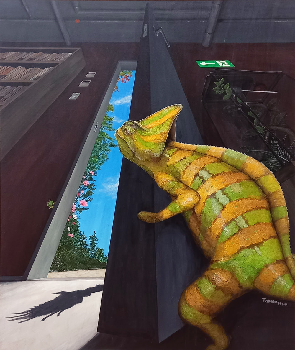 カメレオンやイグアナなどの爬虫類系などをいろんあなシーンや想いと組み合わせて描いていました。
