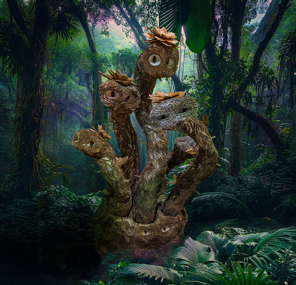 森の奥深くに生息する変幻自在の植物。目の前に現れた生き物の本質(本性)を真似て顔や姿を作り出す。