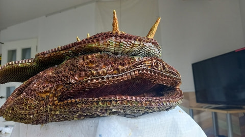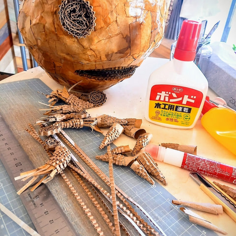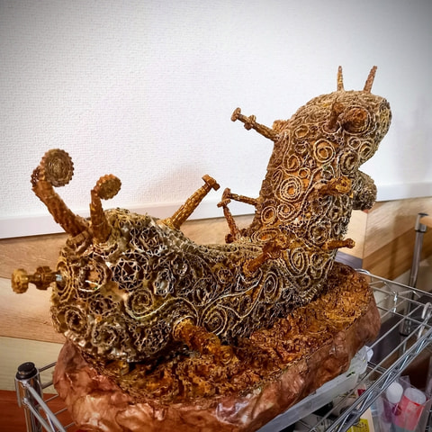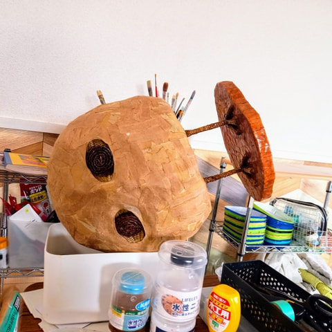 2023.12.03 ガォーガォーの怪獣ができるまで その2 まもなく完成。 黒っぽいダンボールを使ったことで、思ったより真っ黒になってしまったので 全体的に、金や銀の塗料を混ぜたものを塗って、ちょっと... 制作中 つづきを見る