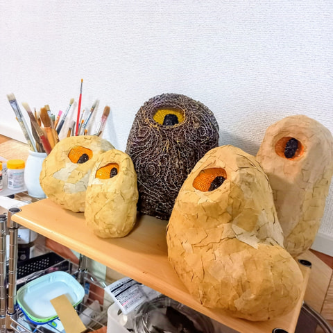 2024.01.18 次のやつー 途中経過-1 次の作品も作り始めています。 今回は丸っこくしたかったのと、2本の足で立たせたかったので、 足の部分だけ、はじめて金属の骨組みを使いました。... 制作中 つづきを見る